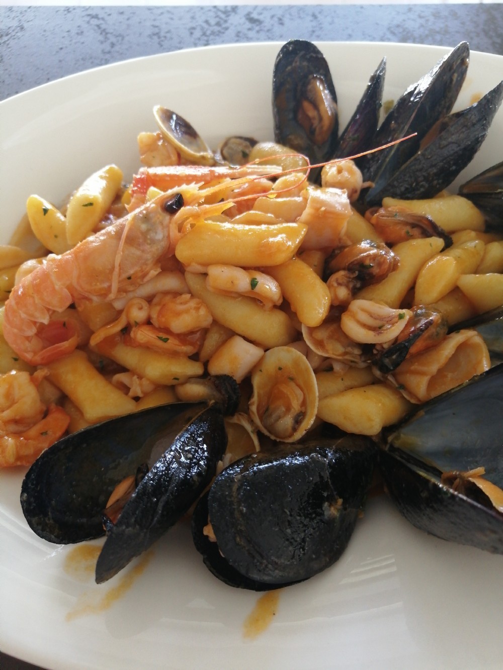 Gnocchi di patate con calamari, gamberi, cozze e vongole *prodotto congelato
